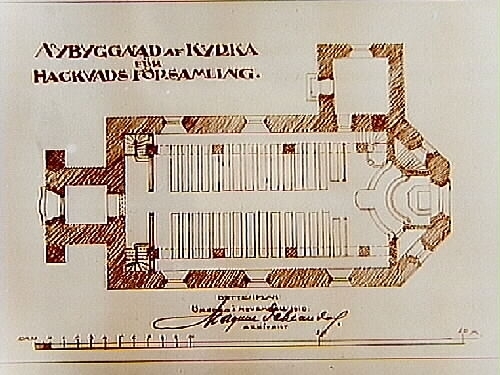 Ritning, nybyggnad av kyrka för Hackvads församling.