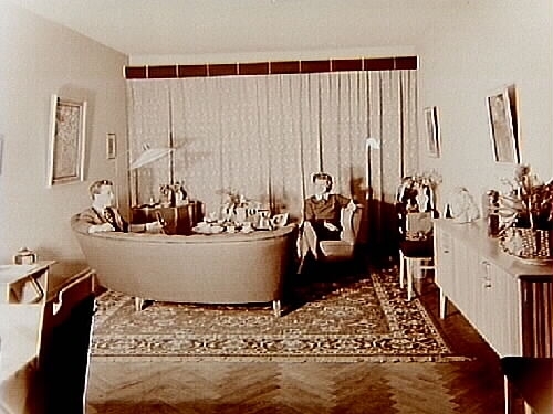 Rumsinteriör, 2 personer. Karl Erik och Ingabritts hem i Göteborg.