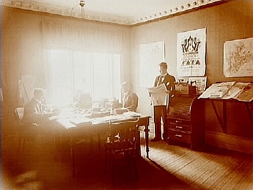 Örebro Dagblad, redaktionsinteriör, 3 personer vid skrivbordet.