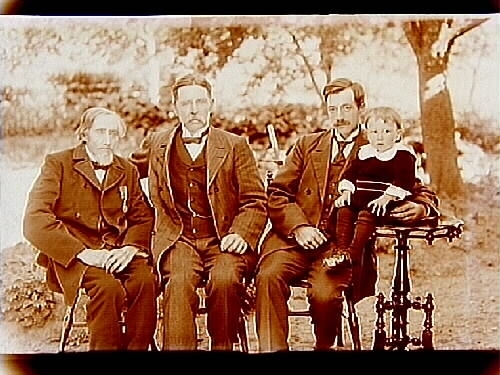 Släktgrupp, fyra generationer: farfars far, farfar, far och son.