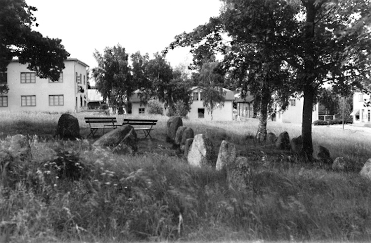 Motiv från Odensbacken, bostadshus, möbelaffär.