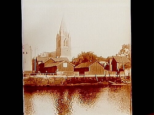 Nikolaikyrkan i bakgrunden, trähusbebyggelse.