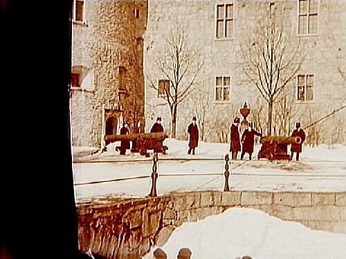 Örebro Slott, sex herrar vid två kanoner, kanoninvigningen.