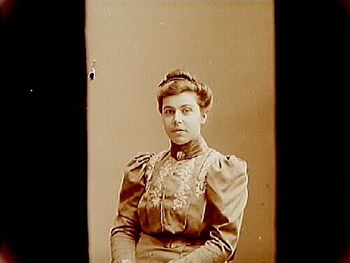 Titel: En kvinna, bröstbild. Fru Hulda Lindskog, fotograf Sam Lindskogs fru.