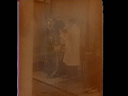 Skofabriken Örnen, interiör, en man vid skomaskin.