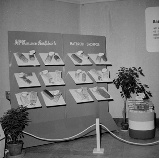 Utställning på Konsthallen, interiör, APK:s utställningsmonter (Kjellgrens Brödfabrik AB).