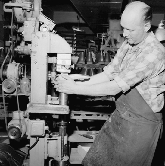 Oscaria Skofabrik, interiör, skotillverkning, en man.