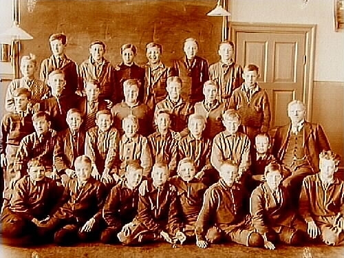 Vasaskolan, klassrumsinteriör, 28 skolpojkar med lärare E.R. Hydner, sal 9.