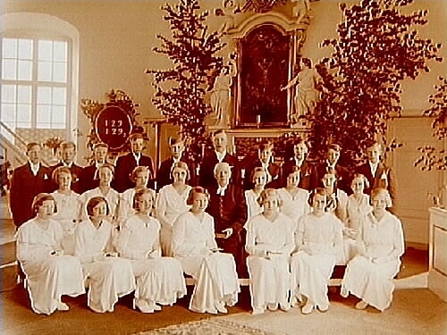 Konfirmander, 15 flickor, 10 pojkar och pastor Thorman.