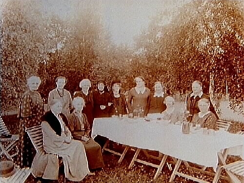 50 års kamratmöte, 12 lärarinnor i trädgården.