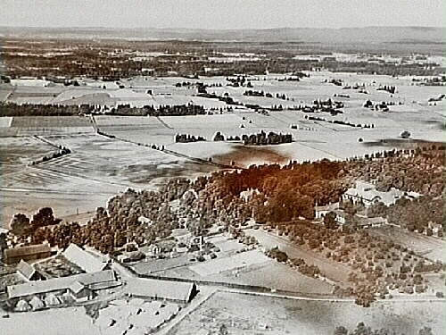 Bild tagen efter flygfoto över Riseberga klosterruin och Riseberga gård.