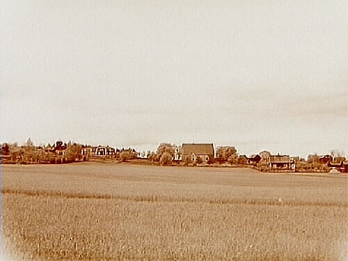 Kårsta kyrkby, kyrka med klockstapeln och bostadshus.