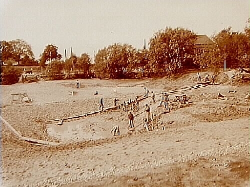 Grävningsarbete, pågående arbete med badanläggningen vid Gustavsvik.