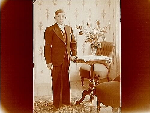 Rumsinteriör, en pojke, sonen Hartvig.