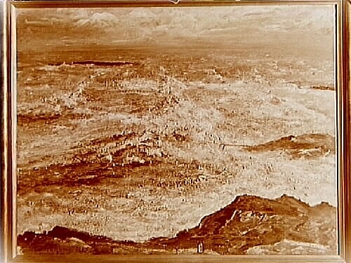 Oljemålning. Motiv: Landskap, av konstnären Martin Åberg, 1937.