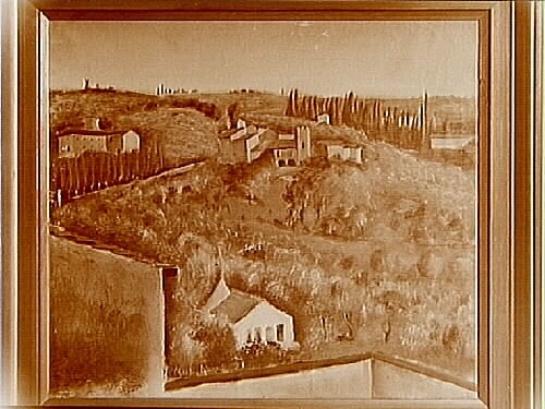 Oljemålning. Motiv: Landskap, av konstnären Martin Åberg, 1921.