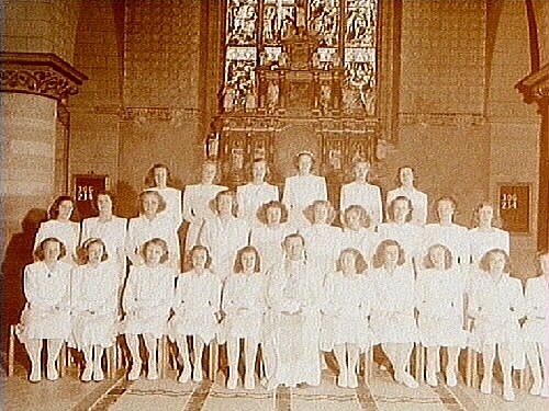 26 konfirmander, 26 flickor och pastor L. E. Westerström.