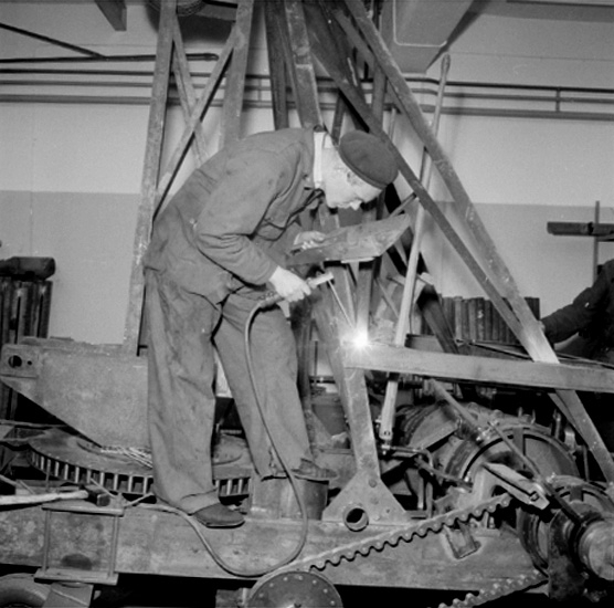 Philips Svenska AB, verkstadsinteriör med arbetare.