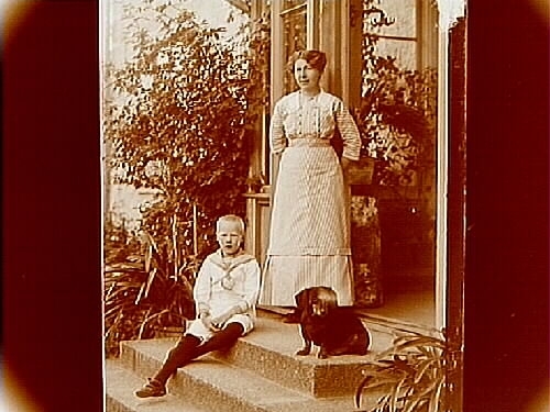 En kvinna, en pojke och en hund.