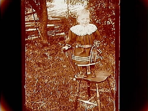 En liten flicka på en stol.