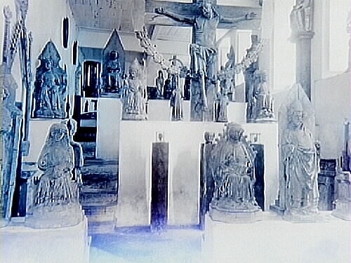 Gotlands Fornsal, interiör från avdelningen för medeltida kyrklig konst, skulpturhallen.