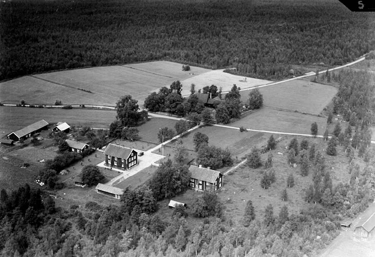 Flygfoto över Tångeråsa, bostadshus och ekonomibyggnader.