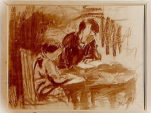 Oljemålning. Motiv: Två personer, av konstnären Erik Hallström.