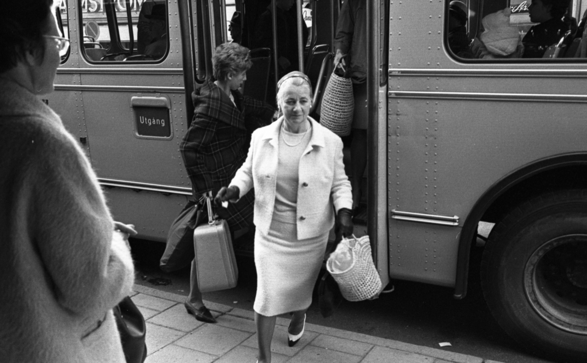 Kvinna stiger av bussen
