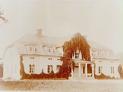 Herrgårdsbyggnad på en och en halvvåning, med frontespis, valmat tak med takkupor, stor veranda.