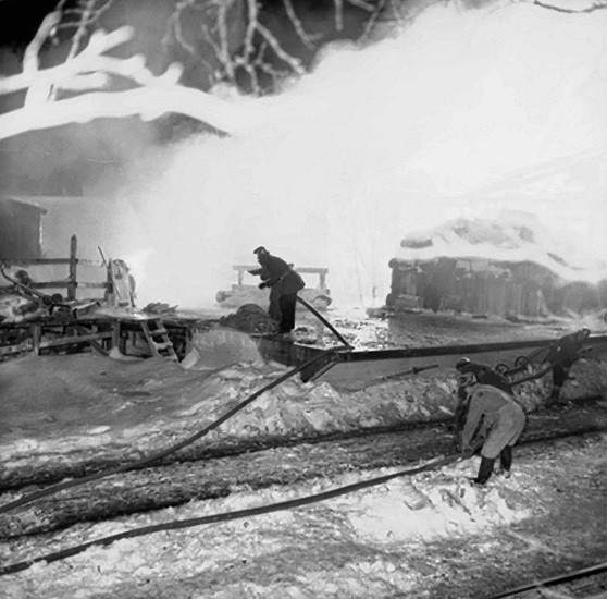 Brandsläckning, branden i pappersmagasinet i Ställdalen (februari 1956).