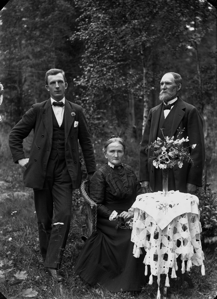 Familjegrupp tre personer.