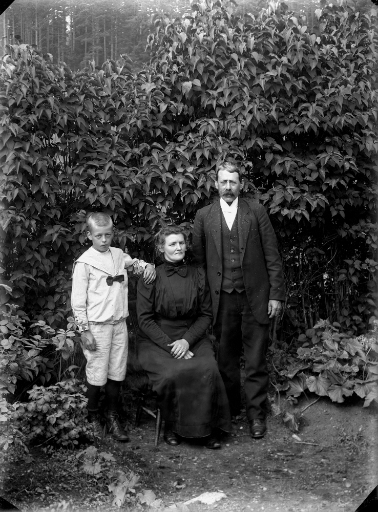 Familjegrupp tre personer.