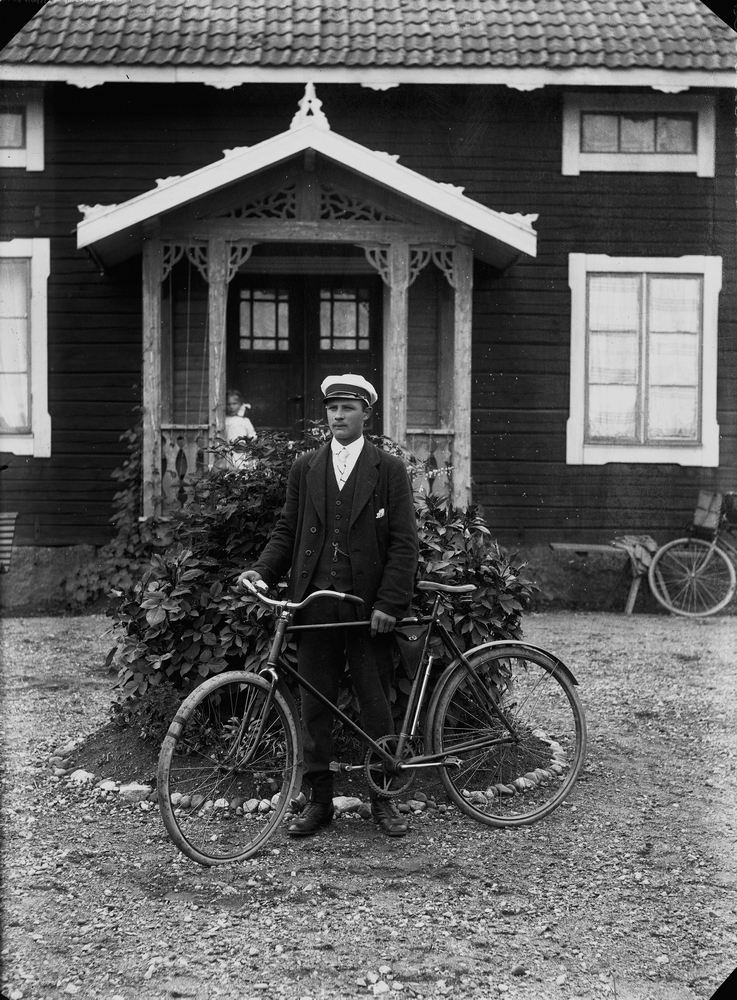 En man med cykel.