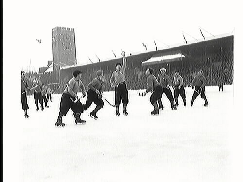 Situationsbild, Tage Magnusson tar ner bollen i vit mössa och Snoddas Nordgren (bandyspelare i Bollnäs)