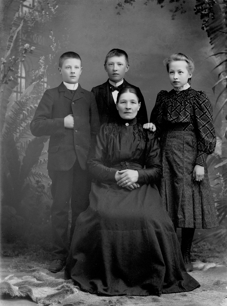 En kvinna och tre barn.