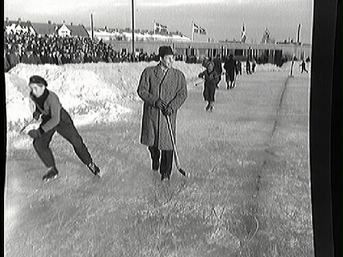 Jörgen Wasberg skadad. Bandymatch med resultatet ÖSK-Bollnäs 1-2.