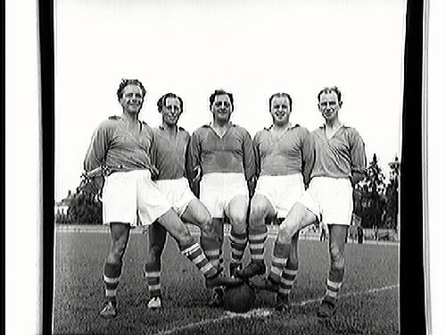 Gamla Örebro Idrottsklubbs kedja från 30-40 talet. Kalle 'Bagges' Jansson, Martin Larsson, Fritz Malm, 'Mågen' Wallin och Bertil Hellmèn.