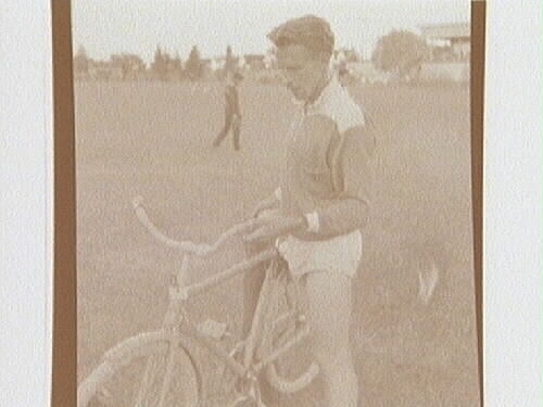 Friidrott, Eyravallen 1946. Henry Eriksson med cykel.