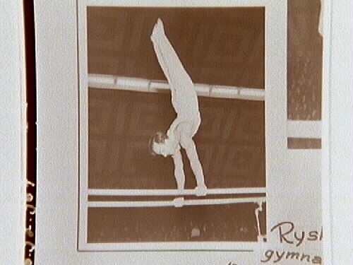 Ryska gymnaster på bild vid Idrottshuset 1950.