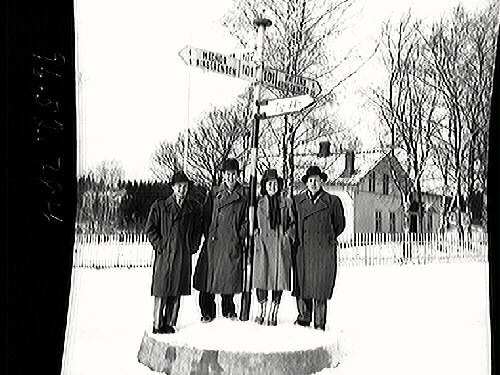 Gösta Klingbergs ressällskap ståendes vid vägskyltar i Oslo.