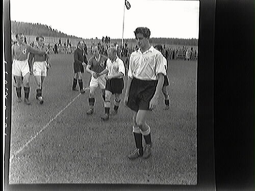 'Klämmen' Pettersson ÖSK och Bertil Nordahl DIF tackar för fotbollsmatchen.