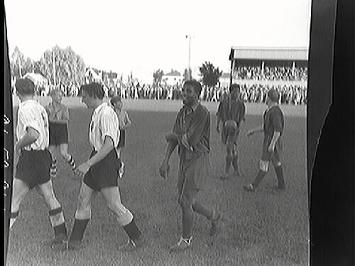 Fotbollsspelarna lämnar planen efter match.
