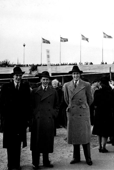 Nordström, Garp och Klingberg utanför Råsunda, Stockholm.