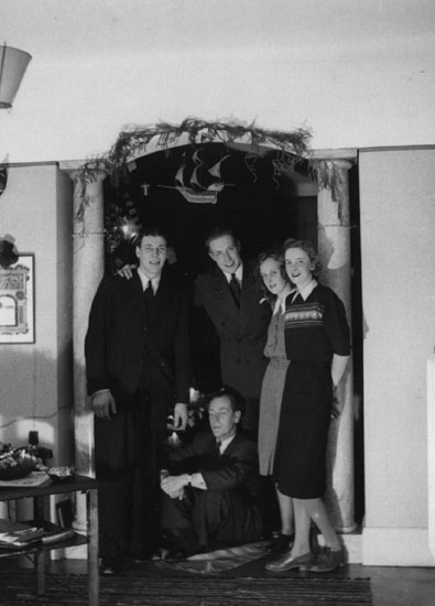 Jörgen Wasberg och Klingberg med två damer, sittande; Jensen.