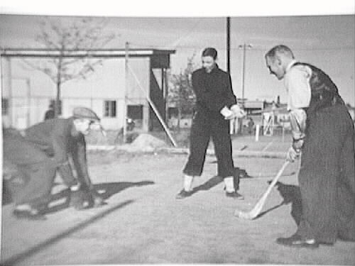 Gösta Klingberg beredd att fånga bollen. Jörgen Wasberg och Vidorf Pettersson tränar målvakten.