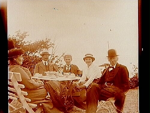 Ellen och fru Larsson. Herr Karlén och två herrar.