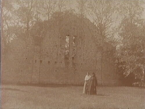 Riseberga klosterruin. Fru Larsson med dottern Ellen.