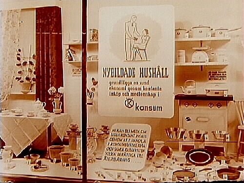 Titel: Konsum, skyltfönster, husgeråd.