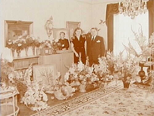 Titel: Rumsinteriör, ett par. Herr och fru Hagman, 40 årsdag.