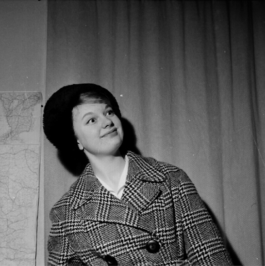 Titel: En kvinna, bröstbild. Bilden tagen för Oscaria-skylt.